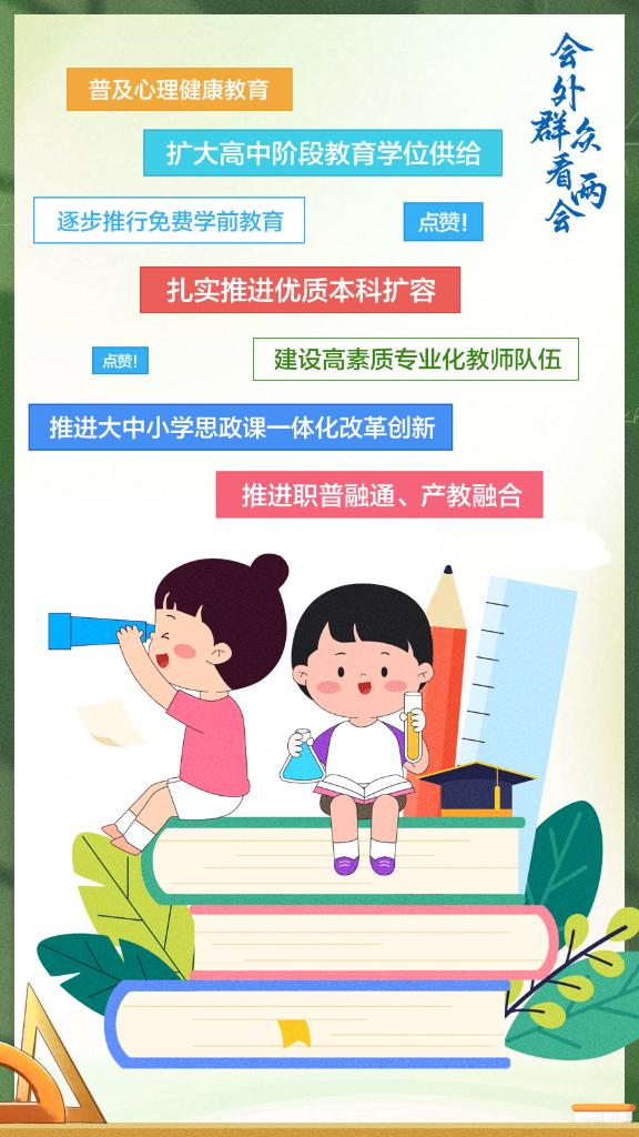 教育事關(guān)每個(gè)家庭。今年的政府工作報(bào)告提出,加快建設(shè)高質(zhì)量教育體系,制定實(shí)施教育強(qiáng)國(guó)建設(shè)三年行動(dòng)計(jì)劃……對(duì)于報(bào)告相關(guān)的教育“熱搜話題”,群眾怎么看?