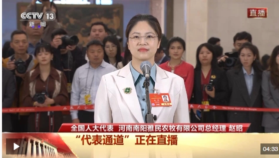 今天(3月11日),十四屆全國(guó)人大三次會(huì)議第三場(chǎng)“代表通道”在人民大會(huì)堂舉行,全國(guó)人大代表、河南南陽(yáng)雅民農(nóng)牧有限公司總經(jīng)理趙昭接受了中央廣播電視總臺(tái)記者采訪。