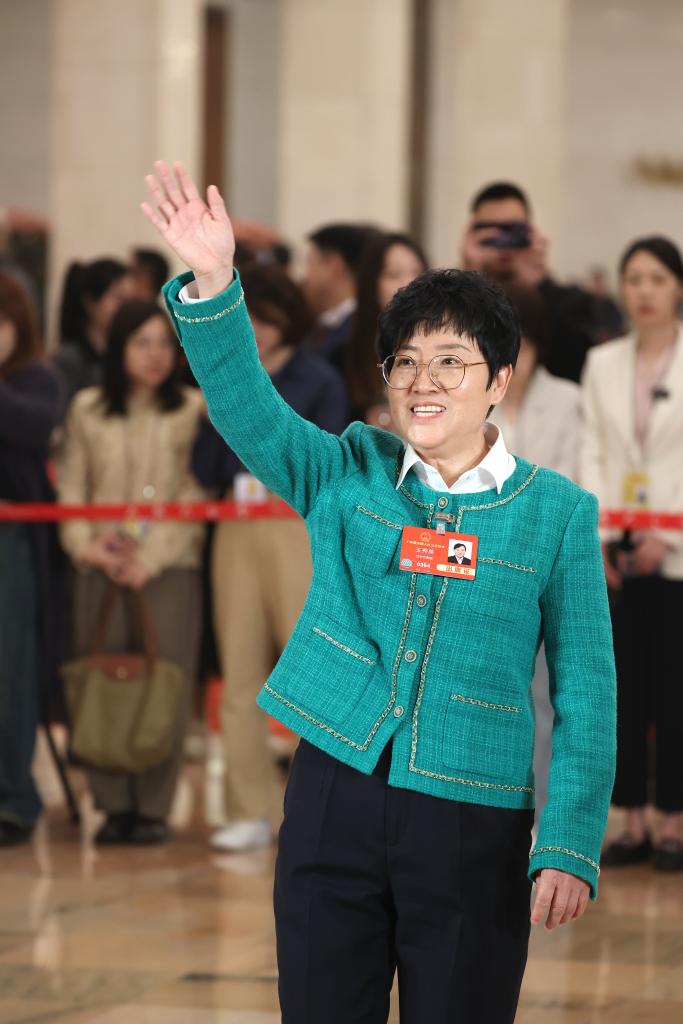 3月11日,第十四屆全國人民代表大會第三次會議第三場“代表通道”集中采訪活動在北京人民大會堂舉行。這是全國人大代表王秀英入場。新華社記者 盧燁 攝