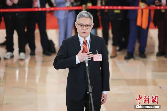 全國人大代表、海爾集團(tuán)董事局主席、首席執(zhí)行官周云杰接受采訪。中新社記者 富田 攝