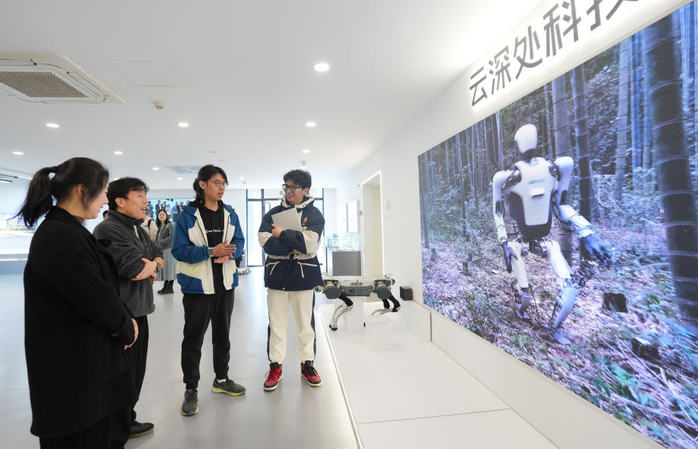 3月1日,在杭州宇樹(shù)科技有限公司的產(chǎn)品展示中心,人形機(jī)器人和四足機(jī)器人在工作人員控制下做動(dòng)作。新華社記者 翁忻旸 攝