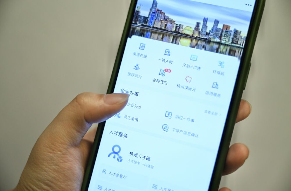 圖為“浙里辦”手機(jī)應(yīng)用客戶(hù)端上的杭州企業(yè)服務(wù)專(zhuān)區(qū)。新華社記者 劉銘翔 攝