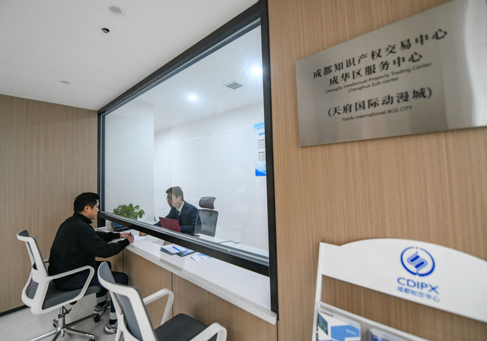 2月27日,民營(yíng)企業(yè)工作人員在成都知識(shí)產(chǎn)權(quán)交易中心成華區(qū)服務(wù)中心咨詢(xún)相關(guān)政策。新華社記者 王曦 攝