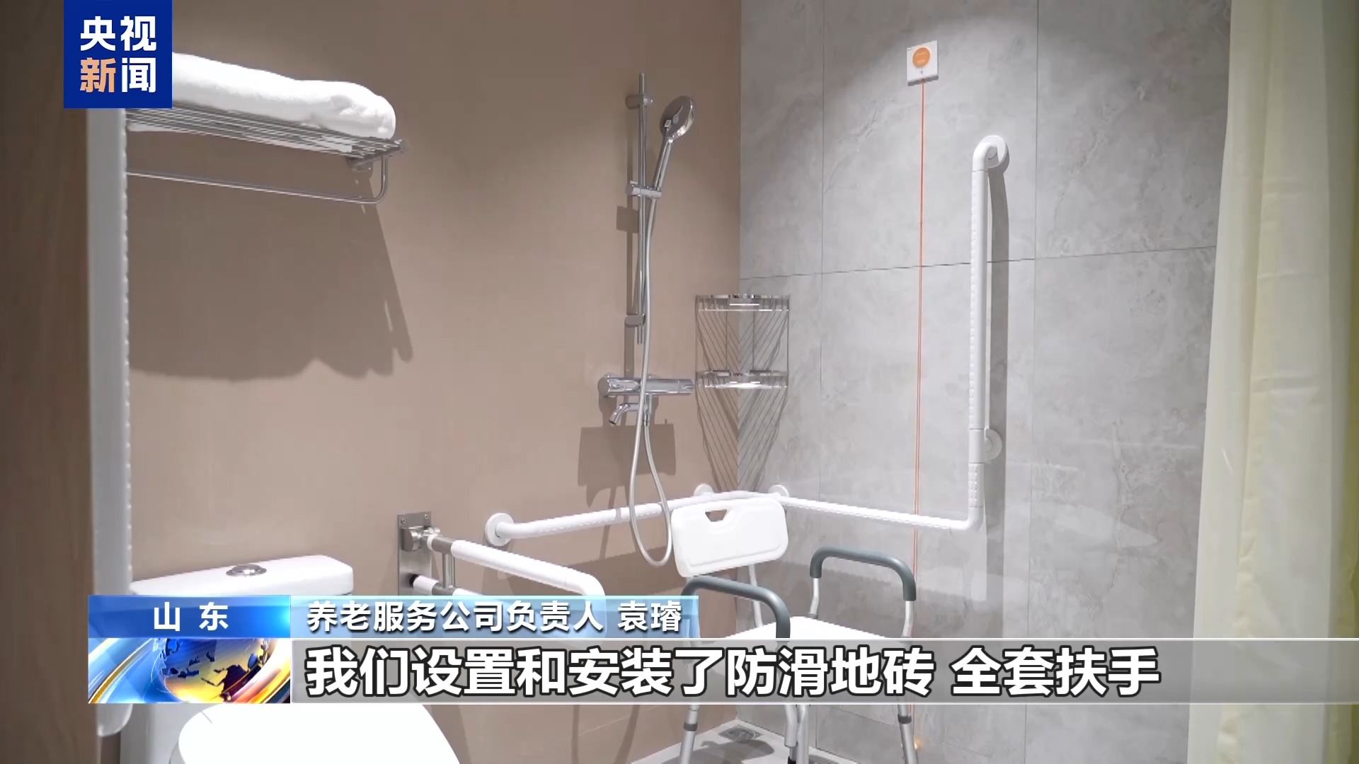 養(yǎng)老服務(wù)公司負(fù)責(zé)人 袁璿:在比較容易發(fā)生危險(xiǎn)的衛(wèi)生間區(qū)域,我們?cè)O(shè)置和安裝了防滑地磚、全套扶手、按動(dòng)式和拉繩式的緊急呼叫系統(tǒng),通過(guò)不斷豐富供給,提升我們的服務(wù)質(zhì)量。