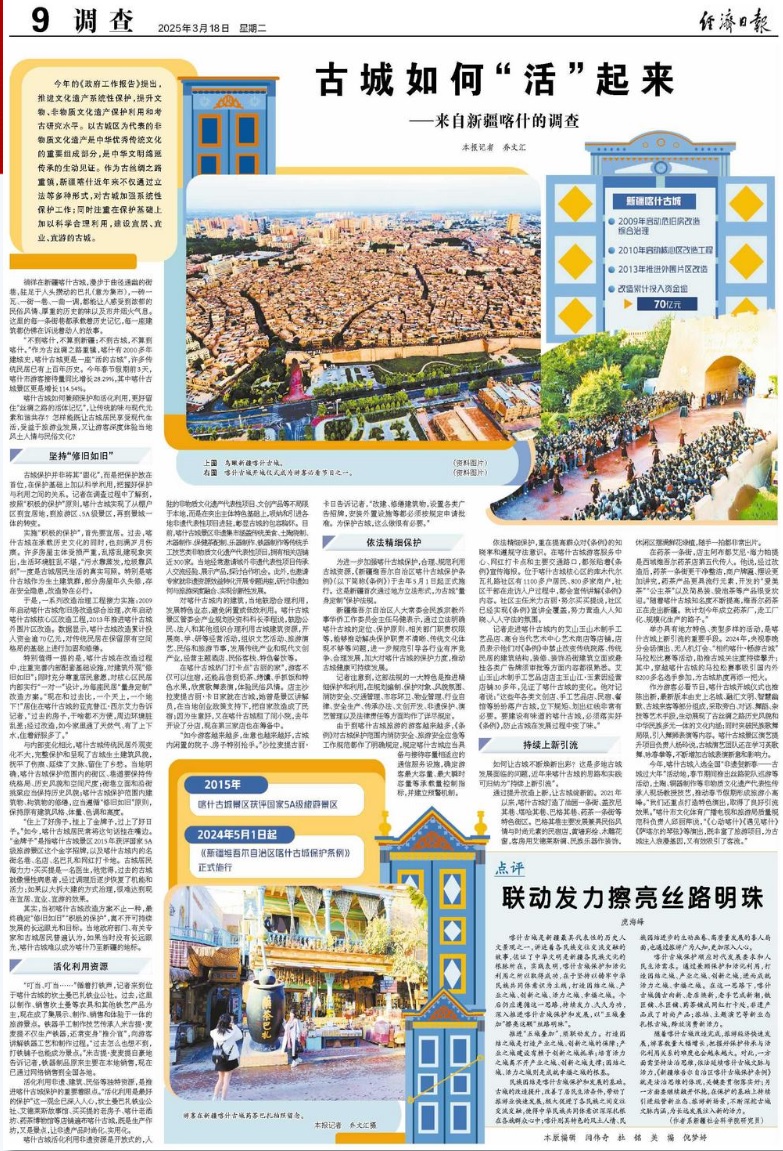 今年的《政府工作報(bào)告》提出,推進(jìn)文化遺產(chǎn)系統(tǒng)性保護(hù),提升文物、非物質(zhì)文化遺產(chǎn)保護(hù)利用和考古研究水平。以古城區(qū)為代表的非物質(zhì)文化遺產(chǎn)是中華優(yōu)秀傳統(tǒng)文化的重要組成部分,是中華文明綿延傳承的生動見證。作為古絲綢之路重鎮(zhèn),新疆喀什近年來不僅通過立法等多種形式,對古城加強(qiáng)系統(tǒng)性保護(hù)工作;同時(shí)注重在保護(hù)基礎(chǔ)上加以科學(xué)合理利用,建設(shè)宜居、宜業(yè)、宜游的古城。
