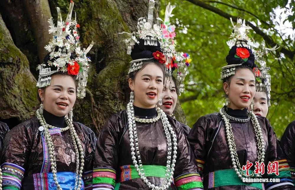 貴州臺江:民眾著苗族盛裝巡游歡度“姊妹節(jié)”。中新社記者 瞿宏倫 攝
