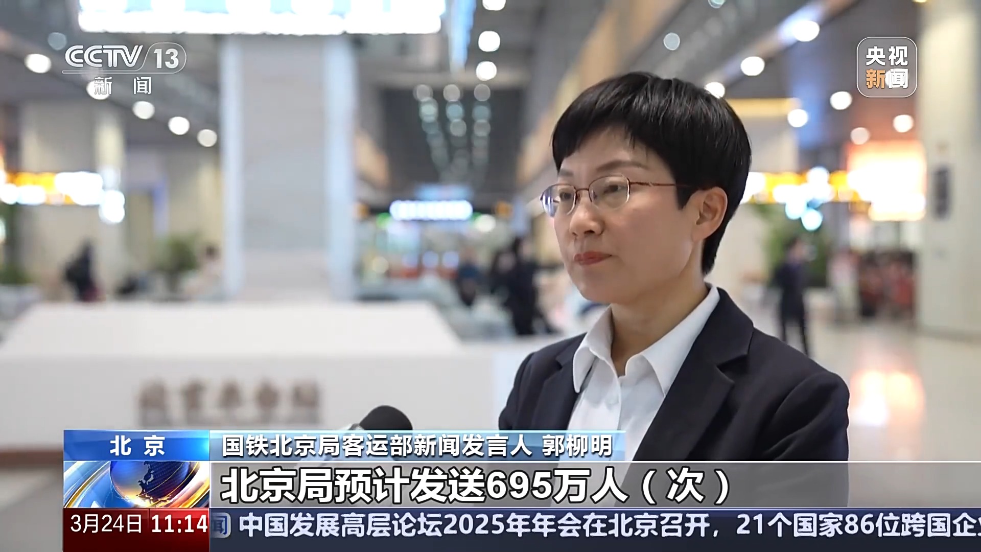 國鐵北京局客運部新聞發(fā)言人 郭柳明:清明運輸期間5天,北京局預(yù)計發(fā)送695萬人次,同比增幅4.6%。高峰日在4月4日,預(yù)計發(fā)送165萬人次??土髦饕性跐?、太原、鄭州、沈陽、青島、西安以及北京至天津、保定、石家莊、張家口往返間。