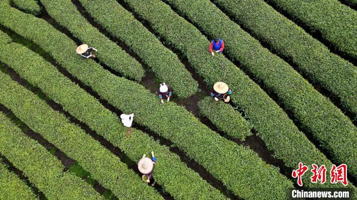 茶園中,侗鄉(xiāng)茶娘腰挎竹簍,穿梭于茶壟間,她們身姿輕盈、手指翻飛,忙碌身影與翠綠茶樹相映成趣,宛若五線譜上的躍動(dòng)音符,歡快彈奏春日豐收樂章。