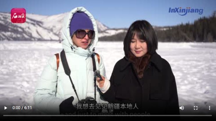受邀做客本期《InXinjiang》欄目訪談的,是來自白俄羅斯的記者瑪麗娜。這是她第二次到新疆,走在喀納斯湖冰面上,她被眼前的美景和當(dāng)?shù)刎S富多彩的文化活動(dòng)深深吸引?,旣惸入y掩內(nèi)心歡喜:“現(xiàn)代化基礎(chǔ)設(shè)施與自然美景相得益彰,這是我喜歡新疆的理由。”
