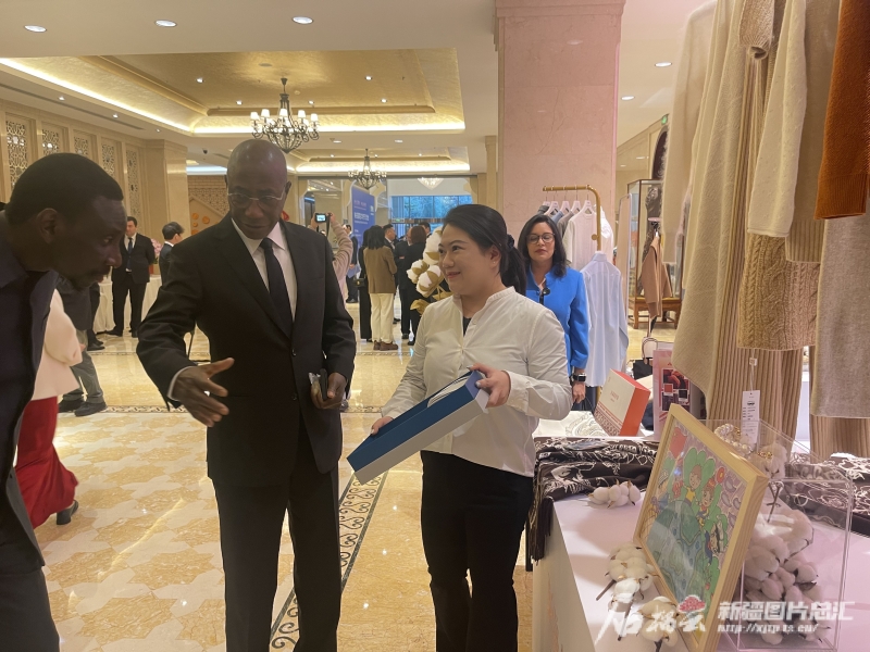 有關(guān)國(guó)家駐華使節(jié)對(duì)新疆特色產(chǎn)品展現(xiàn)出濃厚興趣。石榴云/新疆日?qǐng)?bào)記者 劉翔攝