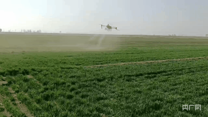 無人機(jī)正在田間作業(yè)(央廣網(wǎng)記者 褚夫晴 攝)
