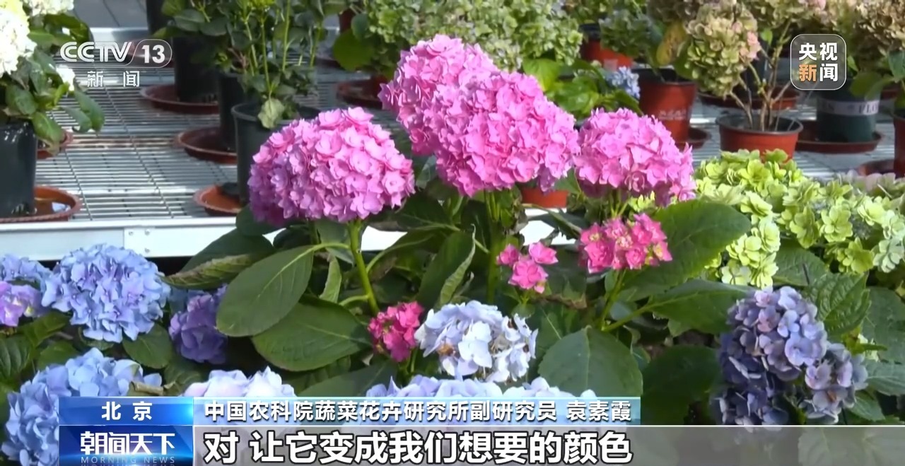 中國(guó)農(nóng)科院蔬菜花卉研究所副研究員 袁素霞:讓它往藍(lán)變的過(guò)程中,變成其他的顏色,比如藍(lán)紫色、紫羅蘭色都是可以的。因?yàn)槲覀冊(cè)谕寥乐屑尤肓艘粋€(gè)關(guān)鍵的重要物質(zhì)鋁離子,可以精準(zhǔn)調(diào)控,可以讓花變成我們想要的顏色。