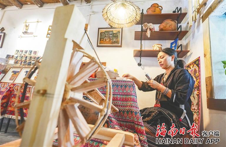 東方市八所鎮(zhèn)北黎村,村民在店內織錦。海南日報全媒體記者陳元才 攝