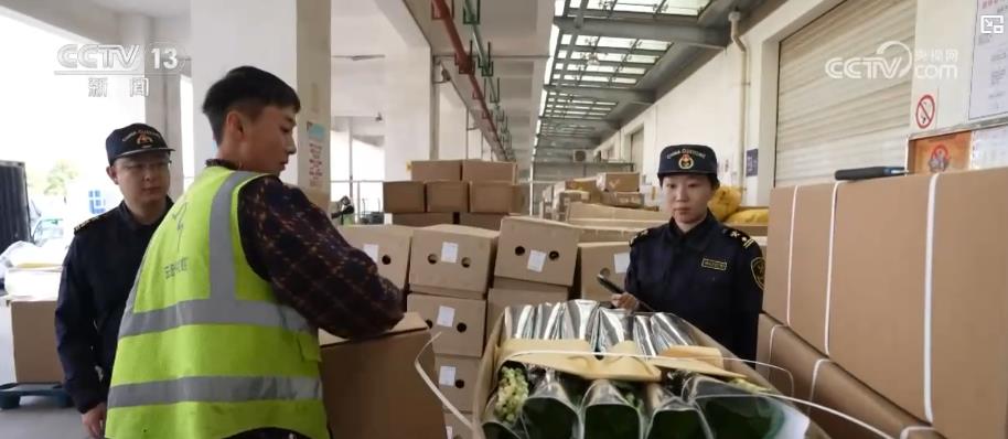 在昆明長水機(jī)場記者看到,5噸鮮花正準(zhǔn)備搭乘早班飛機(jī)飛往迪拜。機(jī)場海關(guān)專門開通了綠色通道,確保鮮花即到即查即走。