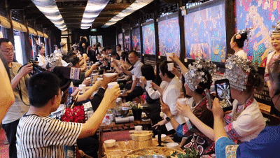 廣西旅游發(fā)展集團有限公司程陽八寨景區(qū)辦公室主任黃能盛表示,今年一季度,景區(qū)的旅游接待量大約為23萬人次,整個景區(qū)的旅游綜合收入約為2800萬元,同比增長約15%—20%?!按逭锩嬉恍┘w經(jīng)濟經(jīng)營的百家宴服務項目,平時來說可能每一餐會有兩三百人用餐,但是一到節(jié)假日就是每一天每一餐都有六七百人用餐,完全是供不應求的?!秉S能盛說。