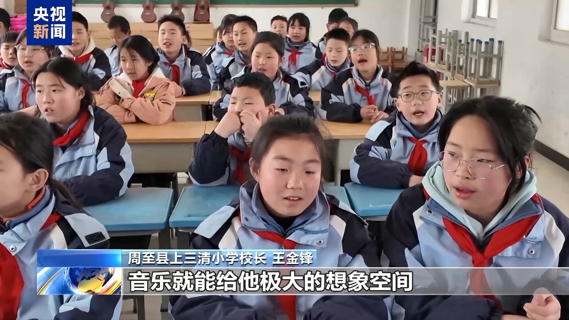 周至縣上三清小學校長 王金鋒:農(nóng)村學校大多是留守兒童,爸爸媽媽都在外面打工,爺爺奶奶在家里看護這些孩子,隔代教育。音樂就能給他極大的想象空間還有發(fā)展空間。孩子們首先對自我有一個認知、提升,他覺得自己可以很自然地站到大家面前去展示自己的才藝。