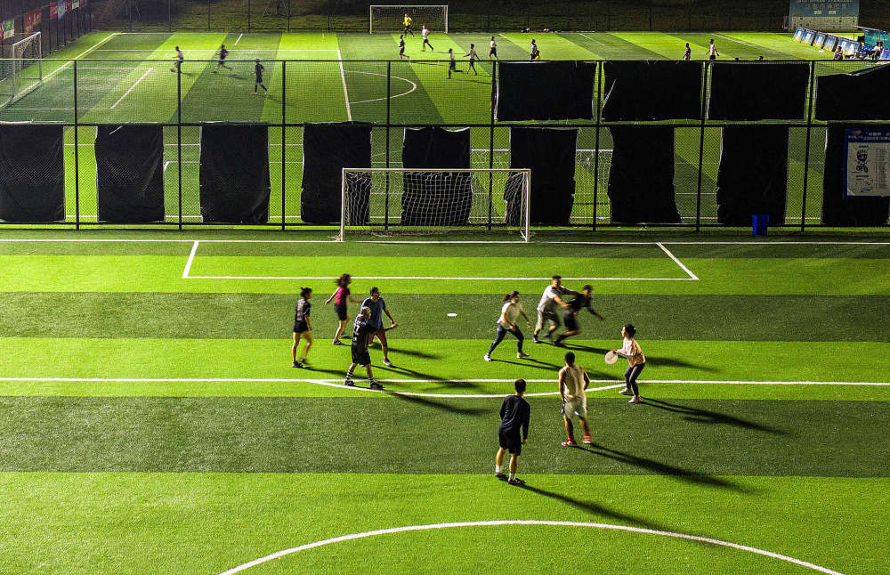 市民在成都市錦江體育公園足球場(chǎng)里玩飛盤。(資料圖)新華社記者 江宏景 攝