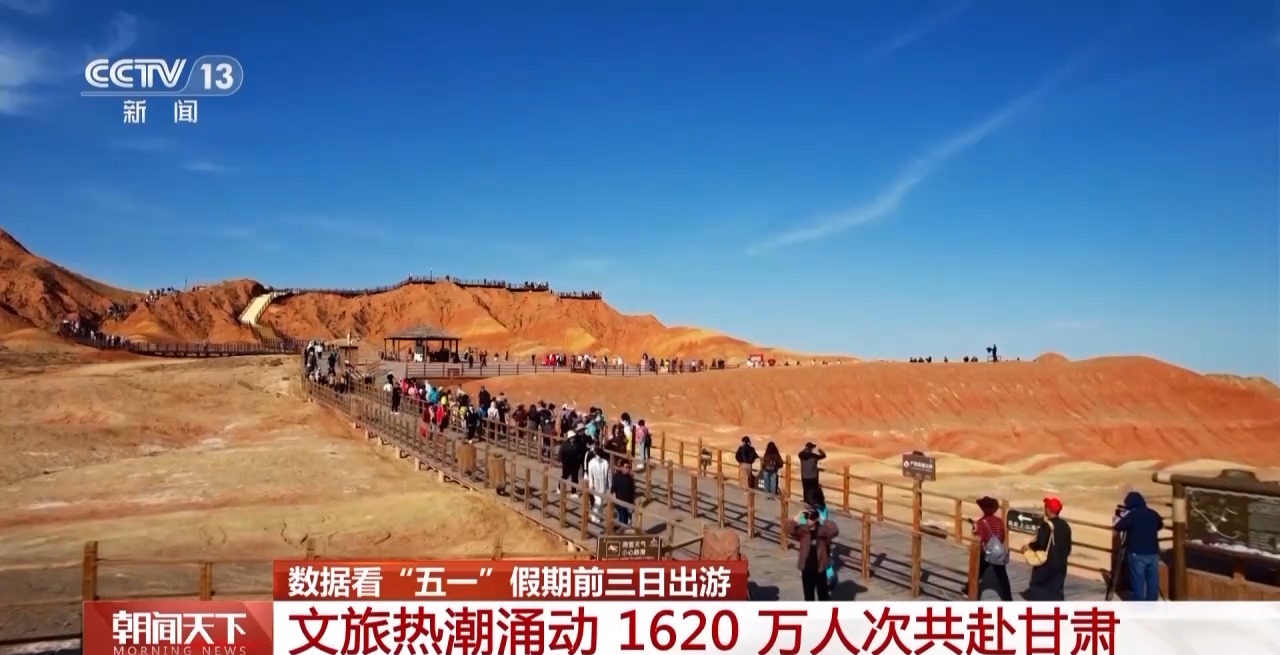 據(jù)甘肅省文旅廳統(tǒng)計(jì),昨天(5月3日),甘肅共接待游客660萬人次,較2024年同期增長5.4%?!拔逡弧奔倨谇?天,全省累計(jì)接待游客達(dá)1620萬人次,較2024年同期增長6.86%,文旅市場熱度持續(xù)攀升。