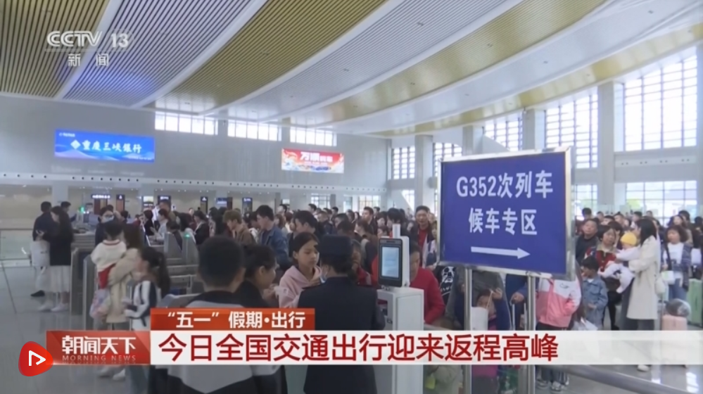 “五一”假期的最后一天,各地迎來(lái)返程高峰。記者從交通運(yùn)輸部了解到,5日交通出行保持高位運(yùn)行,全國(guó)鐵路預(yù)計(jì)發(fā)送旅客超2000萬(wàn)人次,各地鐵路部門精心組織客流疏導(dǎo)。公路方面,中長(zhǎng)途返程車流與短途返城車流疊加,預(yù)計(jì)從下午14時(shí)起,各大中城市、火車站、機(jī)場(chǎng)周邊道路通行壓力較大。