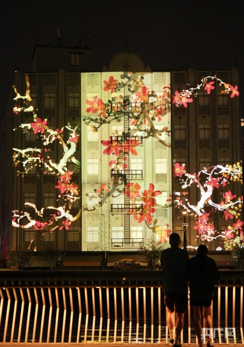 第三屆“閃亮·上?!膘o安國際光影展光影秀(央廣網(wǎng)發(fā) 上海市靜安區(qū)供圖)