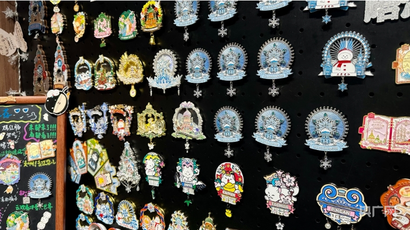 假日期間,各大文博場館、歷史文化街區(qū)等把握住機遇,推陳出新,創(chuàng)新形式,滿足游客多元化需求。哈爾濱中央大街將城市文化與AR技術相融合,推出了兼具科技感與城市文化的文創(chuàng)產(chǎn)品。“這款冰箱貼在去年的基礎上做了一個全新升級,結合AR技術,通過手機‘掃一掃’功能,可以看到一個動態(tài)視頻,實現(xiàn)裸眼3D的效果?!敝醒氪蠼铸埢浤Х熊嚳偨?jīng)理于洋說。