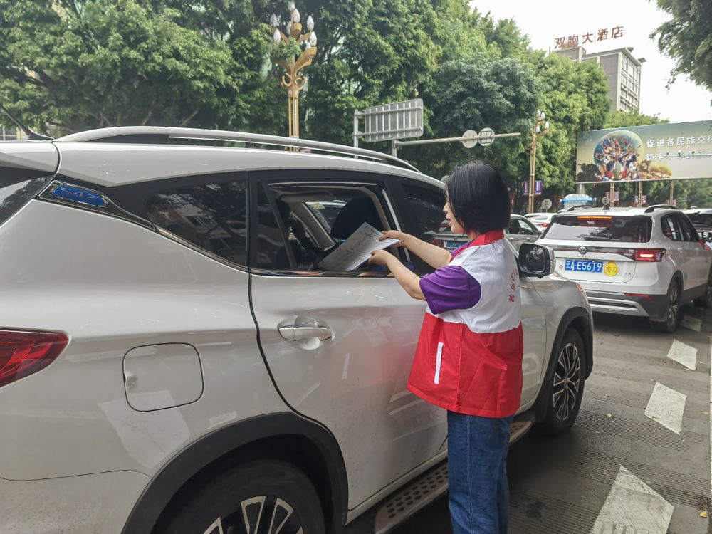 5月2日,云南省墨江哈尼族自治縣一名志愿者向游客發(fā)放節(jié)慶活動(dòng)行程單。(墨江縣融媒體中心供圖)