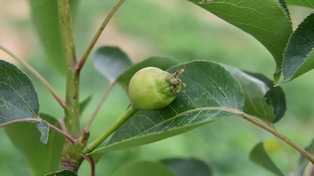在淄博市沂源縣魯村鎮(zhèn)龍子峪村酥梨園,工作人員在進(jìn)行夏季管護(hù)。幾年前這里還是一座荒山,2022年,沂源桃花島農(nóng)業(yè)發(fā)展有限公司流轉(zhuǎn)了這片山地,改造為酥梨園。