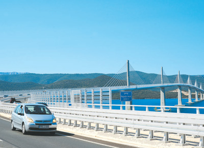 車輛在中企承建的克羅地亞佩列沙茨大橋上行駛。