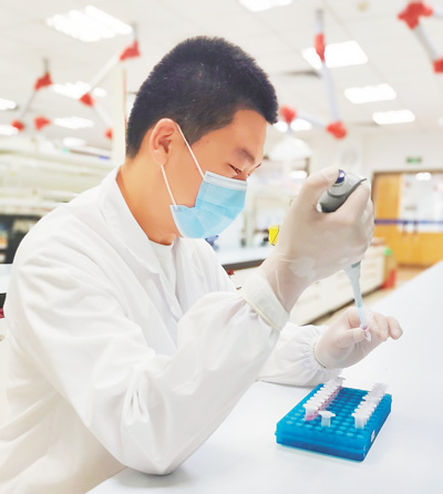 聶龍宇在提取細胞核酸標本。東陽光藥業(yè)供圖