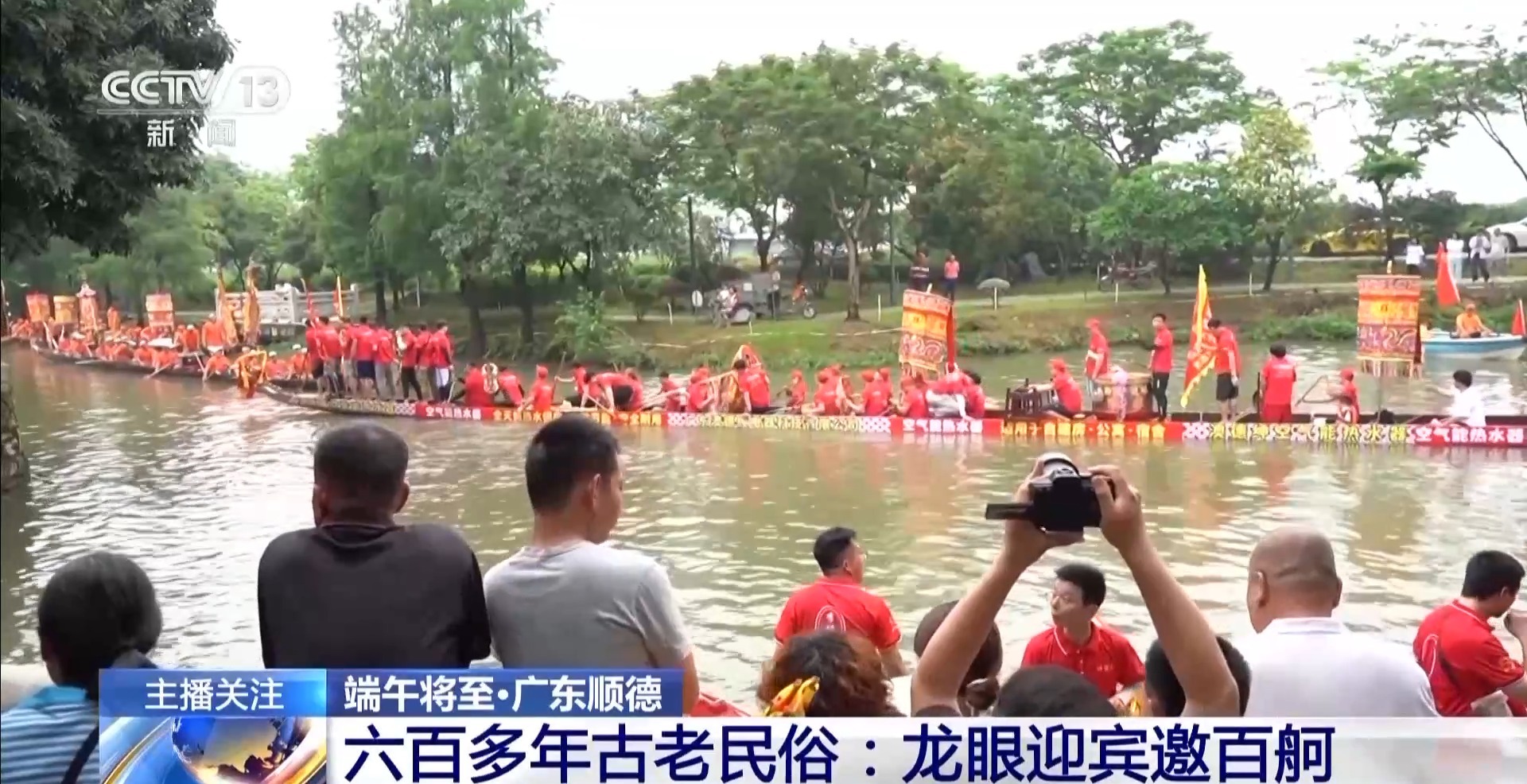 來(lái)自珠三角的船只整齊排列在河涌之上,進(jìn)行一年一度的“龍眼點(diǎn)睛”。