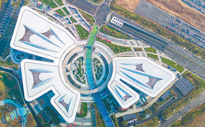 浙江金華金漪湖科創(chuàng)智造產(chǎn)業(yè)園云蝶中心項目外景。胡肖飛攝(人民視覺)