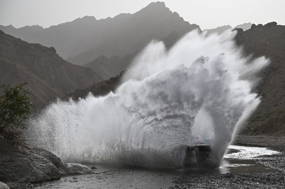 ↑5月23日,賽車(chē)在第三賽段比賽中沖過(guò)涉水路段