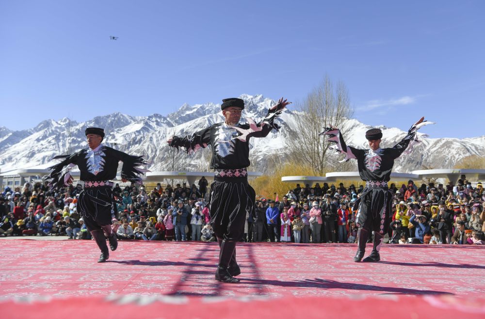 ↑在新疆塔什庫(kù)爾干塔吉克自治縣“彩云人家”民俗村