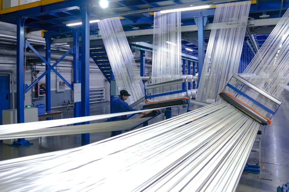 走進(jìn)吉林化纖公司紡絲車間,一束束潔白的碳纖維原絲如瀑布傾瀉而出,只有鋼板尺寬窄薄厚的原絲里竟有50000根單絲。從傳統(tǒng)紡織進(jìn)軍新材料,吉林化纖研究團(tuán)隊(duì)苦干10年,以“寧可青絲變白發(fā),也要白絲變黑絲”的精神打破國(guó)際封鎖,研究出屬于自己的大絲束碳纖維。
