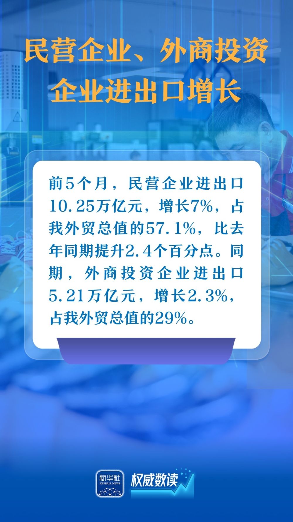 海關(guān)總署9日發(fā)布數(shù)據(jù),今年前5個(gè)月,我國貨物貿(mào)易進(jìn)出口總值17.94萬億元人民幣,同比增長2.5%。以下幾組數(shù)據(jù),展示出我國對外貿(mào)易在外部壓力下依然保持較強(qiáng)韌性。