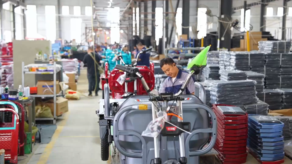 在四川眉山天府新區(qū),記者在雙勝新能源車業(yè)有限責(zé)任公司看到,工人們正緊鑼密鼓組裝一批即將發(fā)往非洲、東南亞的電動三輪車。