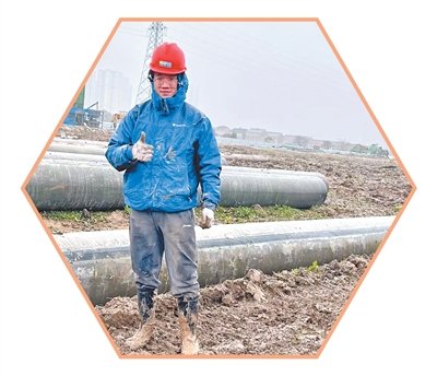 浙江大學(xué)學(xué)生孫逸農(nóng)在車輛段工程現(xiàn)場(chǎng)。 受訪者供圖