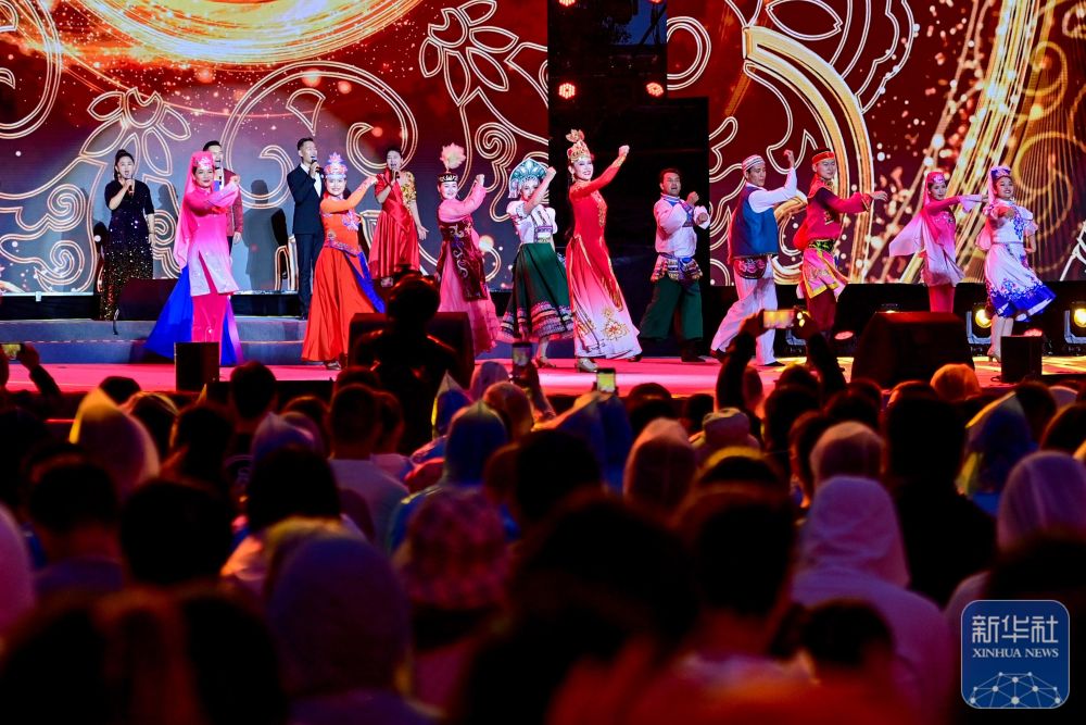 中國文聯(lián)文藝志愿服務團隊“送歡樂下基層”文藝演出在新疆伊犁哈薩克自治州霍城縣香水體育公園舉行(6月14日攝)。