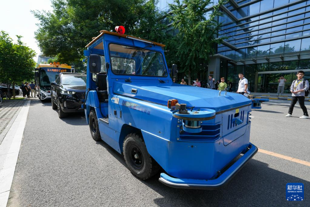6月16日,在北京馭勢科技拍攝的一款用于機場物流作業(yè)的無人駕駛牽引車。新華社記者 鞠煥宗 攝