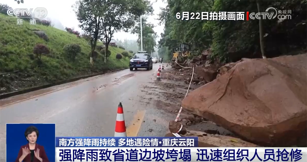 從本月18日開(kāi)始,重慶云陽(yáng)縣出現(xiàn)持續(xù)強(qiáng)降雨。22日上午,云陽(yáng)縣境內(nèi)省道的一處路段發(fā)生邊坡垮塌,導(dǎo)致道路受阻,當(dāng)?shù)囟嗖块T迅速組織人員前往現(xiàn)場(chǎng)處置。