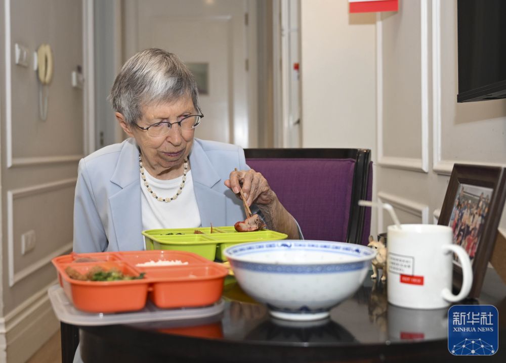 2025年6月13日,白麗詩在養(yǎng)老院的房間里用午餐。