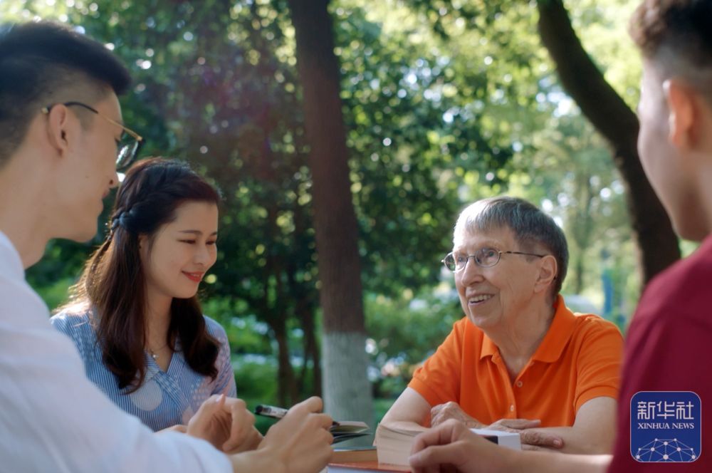 2019年,白麗詩與上海外國語大學(xué)的學(xué)生在一起。新華社發(fā)(上海外國語大學(xué)供圖)