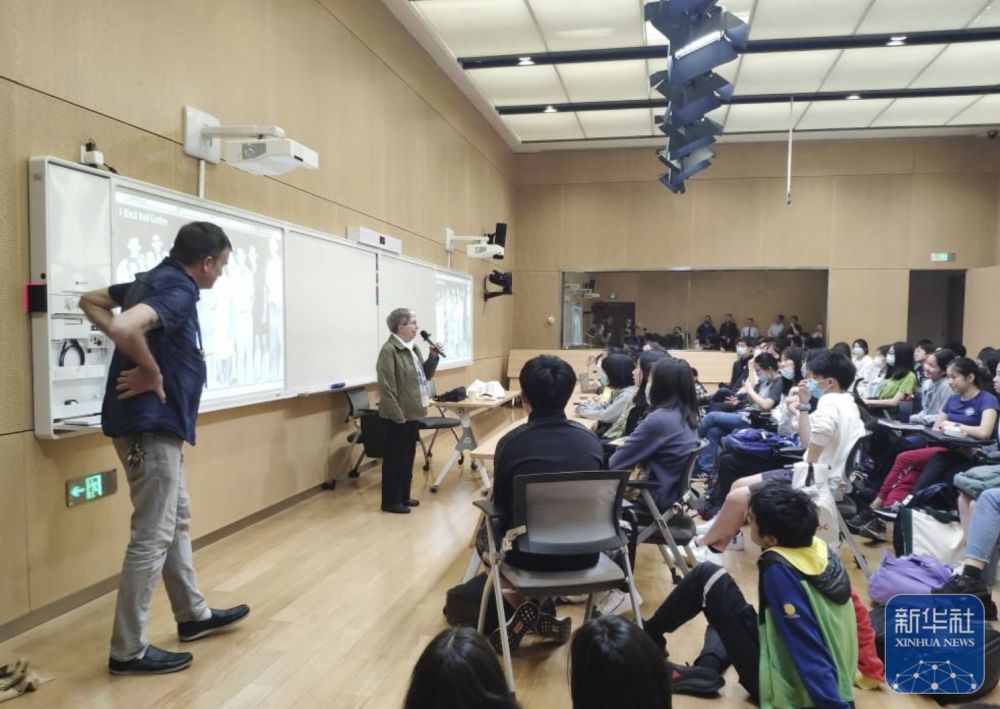 2021年4月28日,白麗詩在上海中學(xué)與學(xué)生交流。新華社發(fā)(上海中學(xué)供圖)