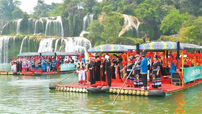 崇左市大新縣西與越南接壤。近年來,大新縣充分發(fā)揮跨境旅游合作區(qū)的“磁吸”效應(yīng),以文化旅游加強(qiáng)中越人文交流,開辟中越文明交流互鑒新路徑。大新縣舉辦中越德天(板約)瀑布跨境旅游合作區(qū)嘉年華、“三月三”系列活動(dòng)等,推出壯族風(fēng)情舞蹈、中越美食長桌宴、中越界河山歌擂臺(tái)賽、中越傳統(tǒng)手工藝品集市、中越名特優(yōu)商品促銷活動(dòng)等,讓文化潮聲與德天瀑聲在邊境線上交“響”呼應(yīng)。