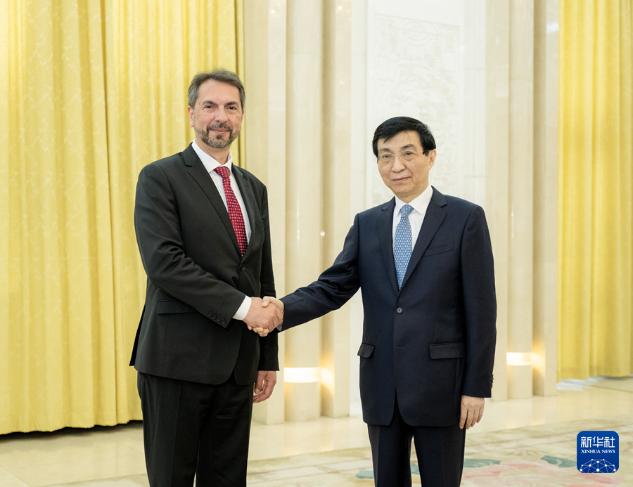 全國政協(xié)主席王滬寧1日在京會見波黑議會代表院副主席查瓦拉。
