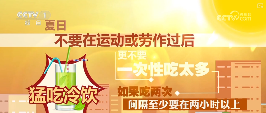 醫(yī)生建議,夏日不要在運(yùn)動(dòng)或勞作過(guò)后猛吃冷飲,更不要一次性吃太多,如果吃兩次,間隔至少要在兩小時(shí)以上。有偏頭痛等頭痛史的人或體溫調(diào)節(jié)中樞尚未發(fā)育完全的兒童慎食冷飲。