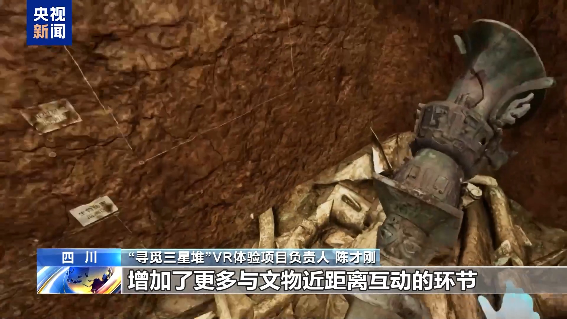 “尋覓三星堆”VR體驗項目負責人 陳才剛:增加了更多與文物近距離互動的環(huán)節(jié),讓游客可以親手“觸摸”到文物,能夠將文物從考古坑里“抱出來捧在手上”,大家感到特別新穎。