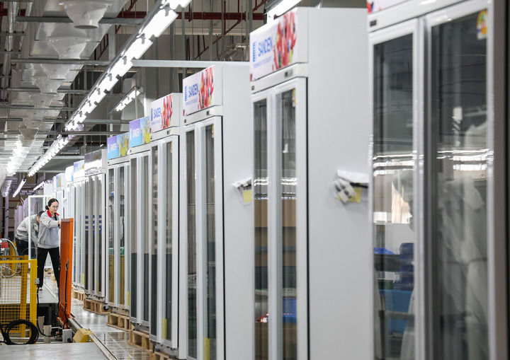 這是在西科冷鏈廣東江門制造基地的產(chǎn)線上,工人對一批出口海外的商用冷柜進(jìn)行外觀檢查(2025年3月22日攝)。新華社記者 劉大偉 攝