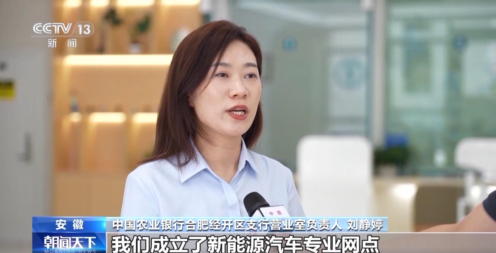 中國(guó)農(nóng)業(yè)銀行合肥經(jīng)開區(qū)支行營(yíng)業(yè)室負(fù)責(zé)人 劉靜婷:我們成立了新能源汽車專業(yè)網(wǎng)點(diǎn),組建一支平均年齡30歲、普遍具有工科背景的年輕服務(wù)團(tuán)隊(duì)。針對(duì)新能源汽車的融資需求,主動(dòng)上門,為他們量身定制專屬金融服務(wù)方案。到目前為止,已經(jīng)為15戶新能源汽車產(chǎn)業(yè)上下游企業(yè)累計(jì)投放貸款60億元。