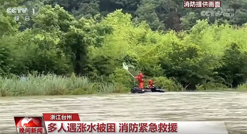 受臺風“丹娜絲”影響,浙江臺州三門縣大橫渡村的多名村民8日在山中遇暴雨漲水,被困山中無法返回,而此時,河水還在不斷上漲。危急時刻,兩名消防員在穿戴防護裝備后,立即駕駛橡皮艇前往河對岸,拋出救援繩,搭建起救援通道。經(jīng)過接力救援,7名被困人員全部脫困,所幸身體均無大礙。